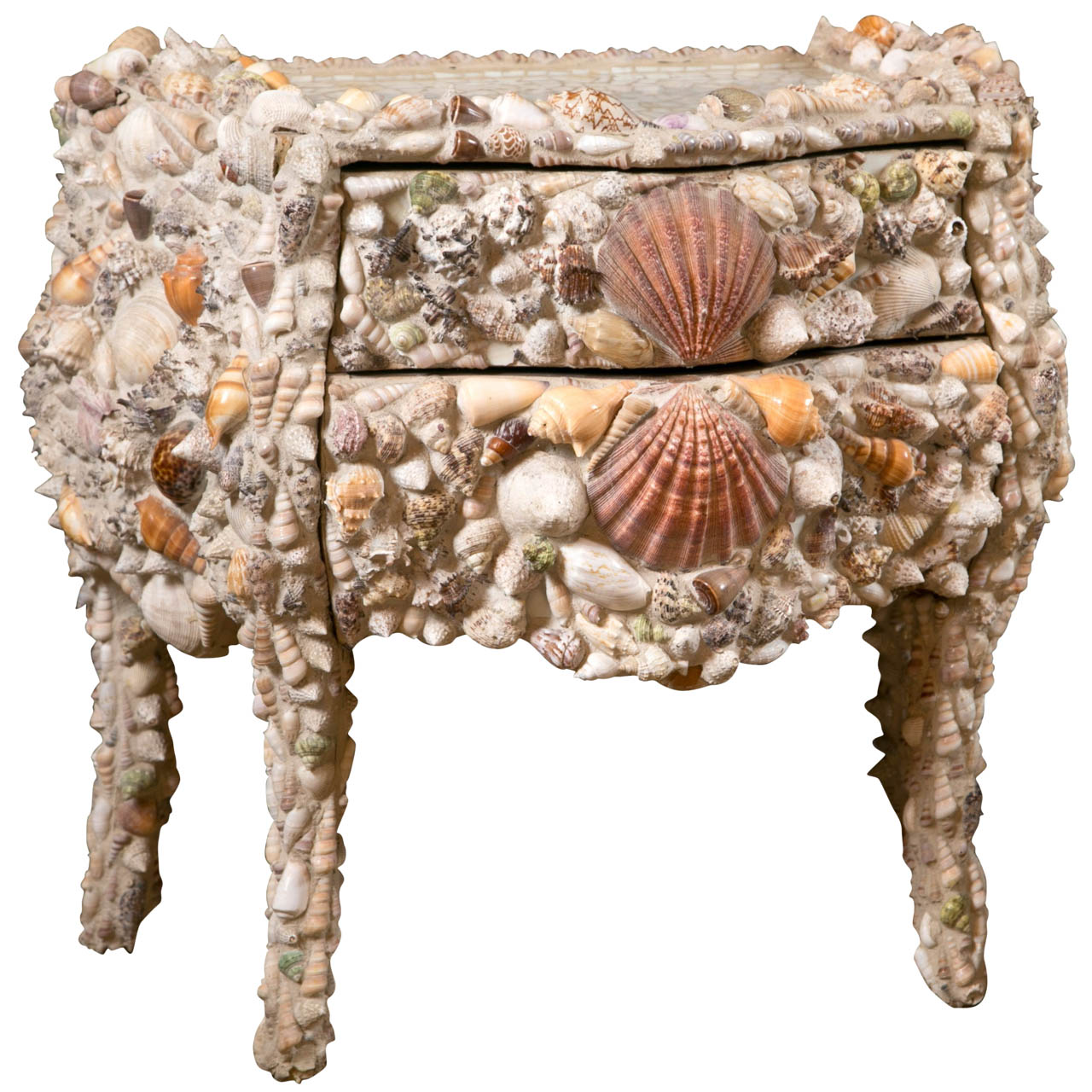 Para além da decoração de pequenos objetos, podes utilizar os búzios e conchas como fator surpresa na decoração de peças de mobiliário. Mesas, armários, aparadores, …, tudo ganha outra vida com um mosaico de conchas.