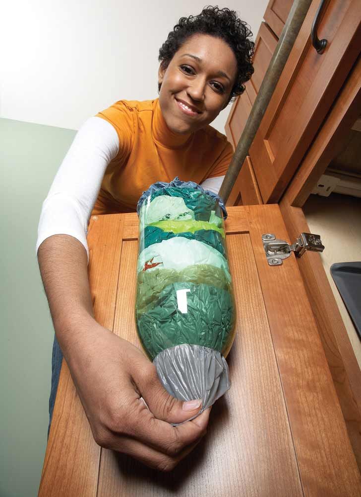 Com uma garrafa de plástico, podes criar uma forma simples e eficaz de ter sempre sacos plásticos à mão, sem que se espalhem por toda a casa