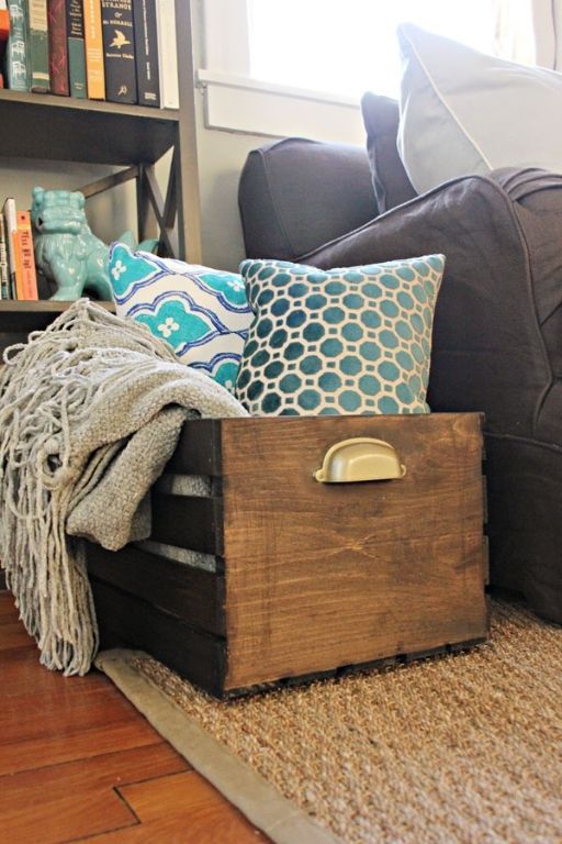 Caixa de arrumação para material de conforto no sofá!