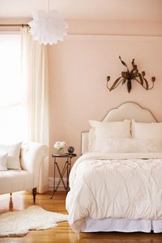 Quarto simples e clássico com paredes cor de rosa!